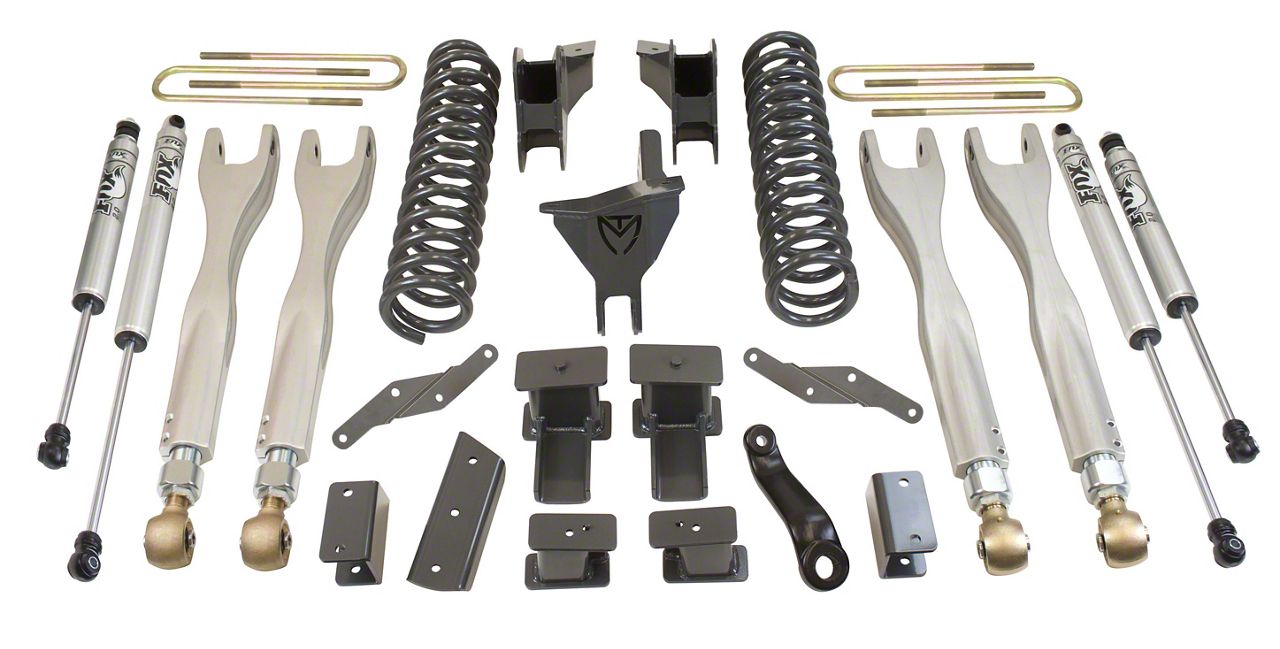 Superior Lift Solution. This Max Trac 4-Inch MaxPro Elite 4-Link Lift Kit with Fox Shocks is designed to provide an affordable all bolt-on lift solution with an off-road performance you can rely on. The kit features massive, forged aluminum upper/lower links that have been anodized and have spherical rod-ends that allow for on-vehicle adjustments. Additionally, the kit comes complete with radius arm drop brackets, coils springs, Fox 2.0 shocks, and rear lift blocks.