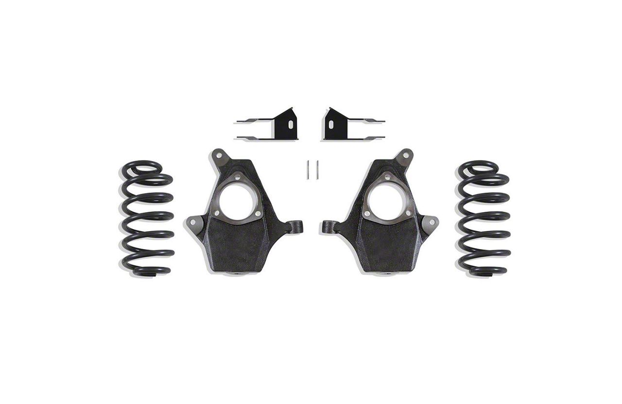 Style and Performance. Upgrade your vehicle's stance with the Max Trac 2-Inch Front/4-Inch Rear Lowering Kit. This kit includes front lowering spindles that provide a 2-inch drop in the front and rear lowering coils for a 4-inch drop in the back. Achieve the perfect blend of style and performance with premium-quality components, ensuring a smooth and precise ride.