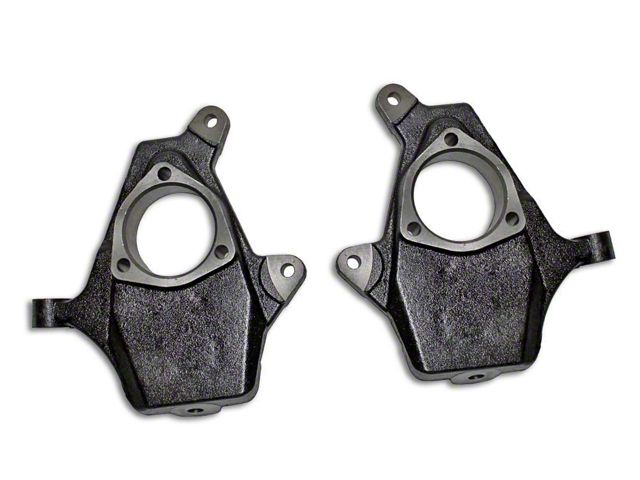 Iron Construction. The Max Trac 2 in. Lowering Spindles are a great way to achieve the look you want on your Yukon without compromising the comfort of your ride. These spindles are manufactured from one-piece high-caliber ductile steel for a solid construction that is made to last. This product also exceeds OEM quality standards without affecting how your vehicle needs to be aligned.