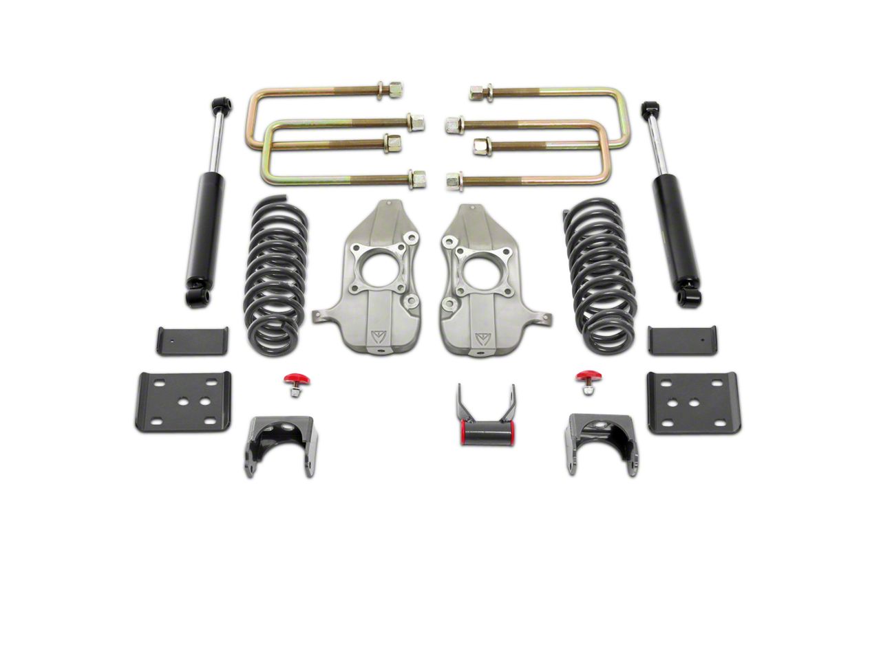 3" Lowering Springs. Special lowering springs are in this MaxTrac kit to drop the front height down by a total of three inches. The springs are powder coated and offer more tension than the stock springs while providing a good solid ride.