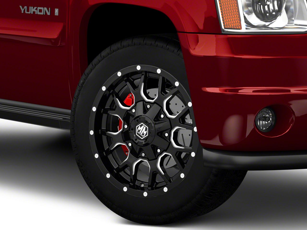 Application. This Mayhem Wheels Warrior Black Milled 6-Lug Wheel; 20x9; 18mm Offset with a backspace of 5.709 Inch, 145.1mm; and bolt pattern of 6 x 139.7mm (6 x 5.5-Inch), contributes to alignment, driving stability, and ensures a perfect fit with the vehicle model. Designed to fit the 2007-2014 Yukon. Sold individually.