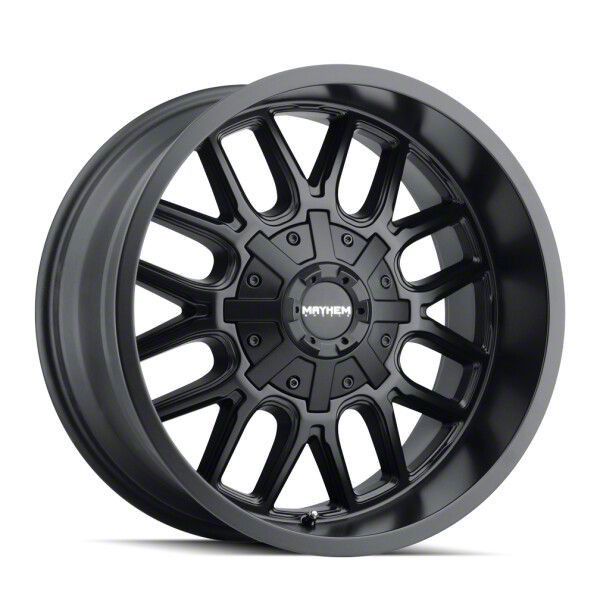 Mayhem Wheels Cogent Matte Black 8-Lug Wheel; 20x10; -19mm Offset This Mayhem Wheels Cogent Matte Black 8-Lug Wheel; 20x10; -19mm Offset brings a sleek and modern touch to your vehicle with its striking design. Its refined finish and bold styling make it an excellent choice for those looking to enhance their car’s visual appeal. Whether you're aiming for a sporty look or a more aggressive stance, this wheel stands out as a premium addition. Perfect for drivers who appreciate a stylish upgrade.