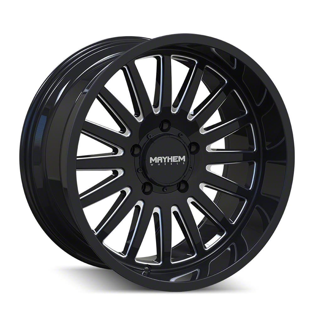 Mayhem Wheels Utopia Gloss Black Milled 8-Lug Wheel; 20x9; 0mm Offset This Mayhem Wheels Utopia Gloss Black Milled 8-Lug Wheel; 20x9; 0mm Offset brings a sleek and modern touch to your vehicle with its striking design. Its refined finish and bold styling make it an excellent choice for those looking to enhance their car’s visual appeal. Whether you're aiming for a sporty look or a more aggressive stance, this wheel stands out as a premium addition. Perfect for drivers who appreciate a stylish upgrade.