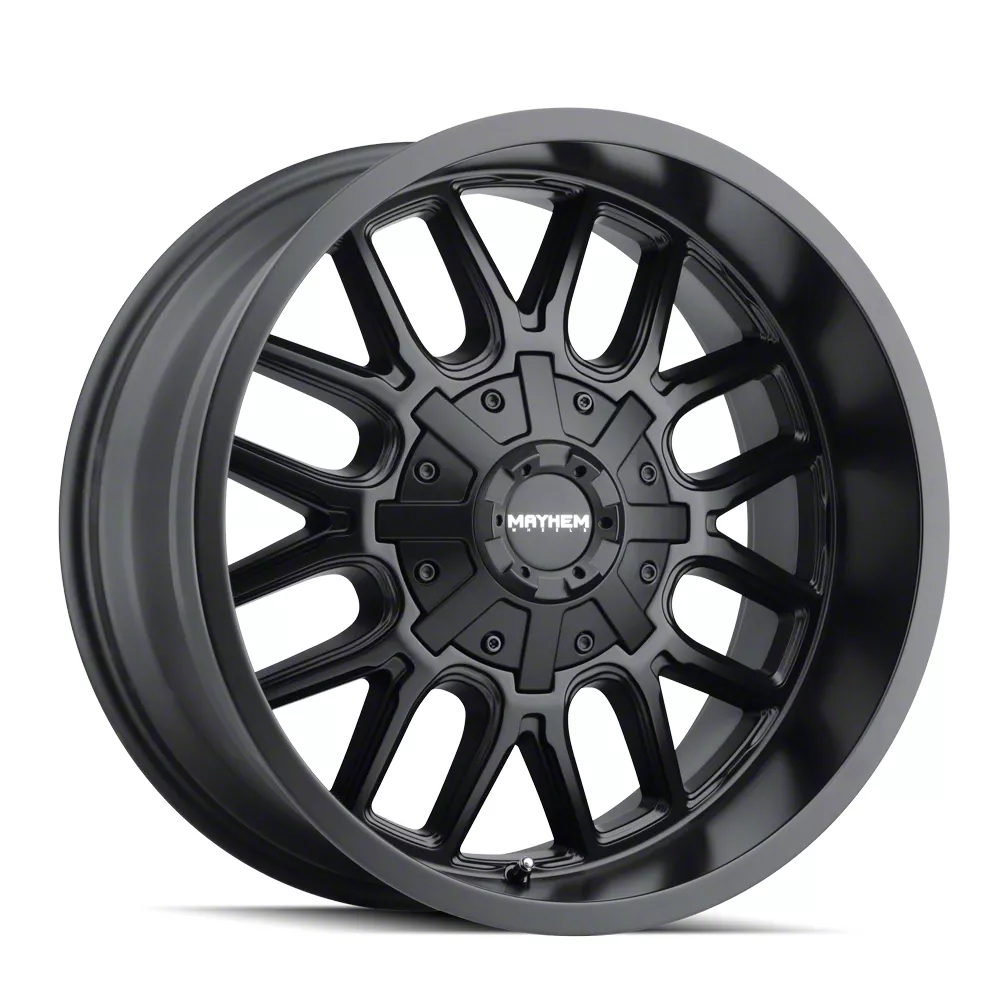 This 22x10 Mayhem Wheels Cogent Matte Black 6-Lug Wheel is completed in a high-quality matte black finish that will be the envy of everyone. There's a durable clear coat that protects against driving hazards.