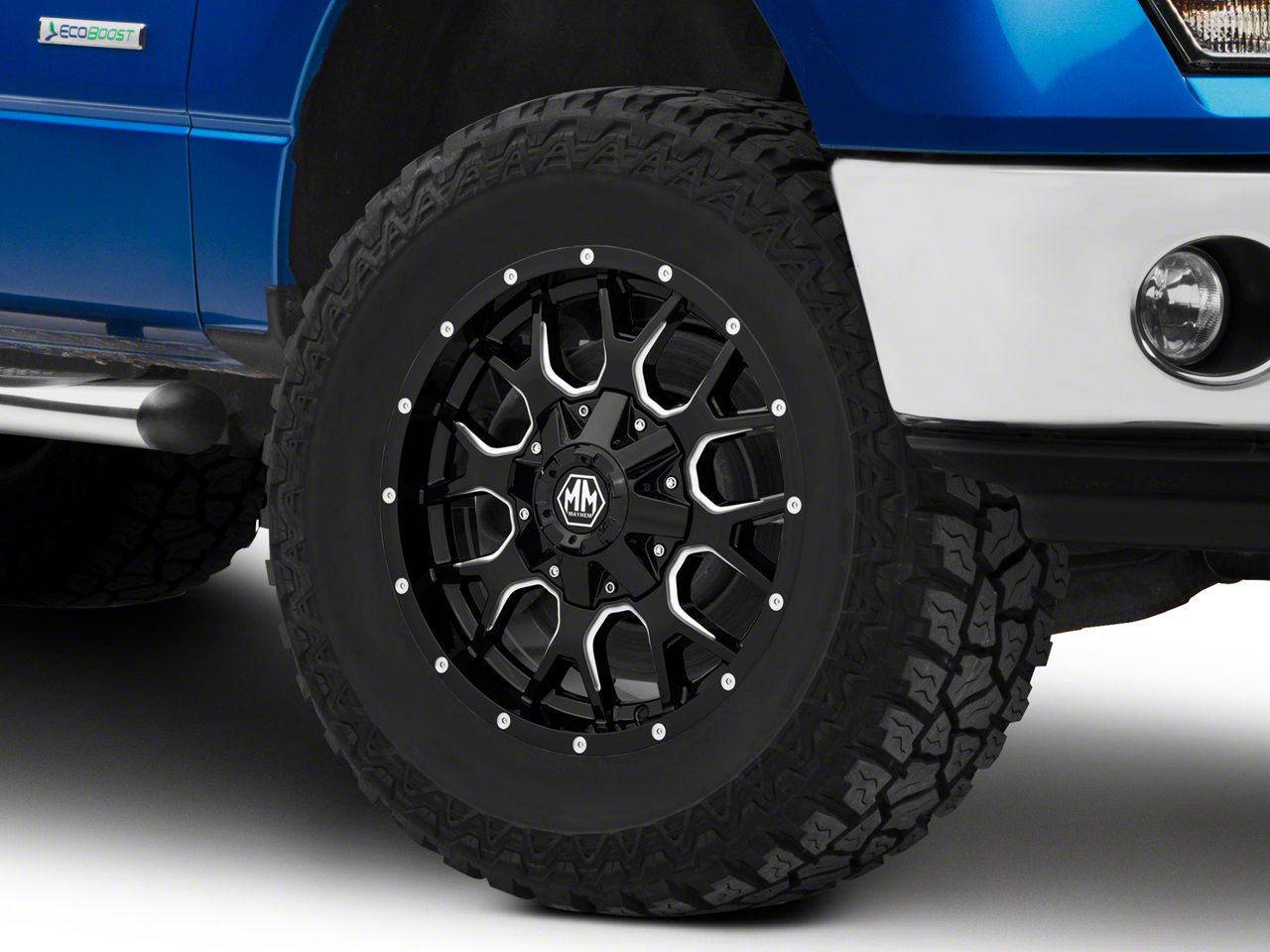 Application. This Mayhem Wheels Warrior Black Milled 6-Lug Wheel; 18x9; -12mm Offset with a backspace of 4.528 Inch, 115.1mm and bolt pattern of 6 x 135mm (6 x 5.31-Inch) ensures impeccable alignment and driving stability. It's designed to fit the 09-14 F-150 models, sold individually.