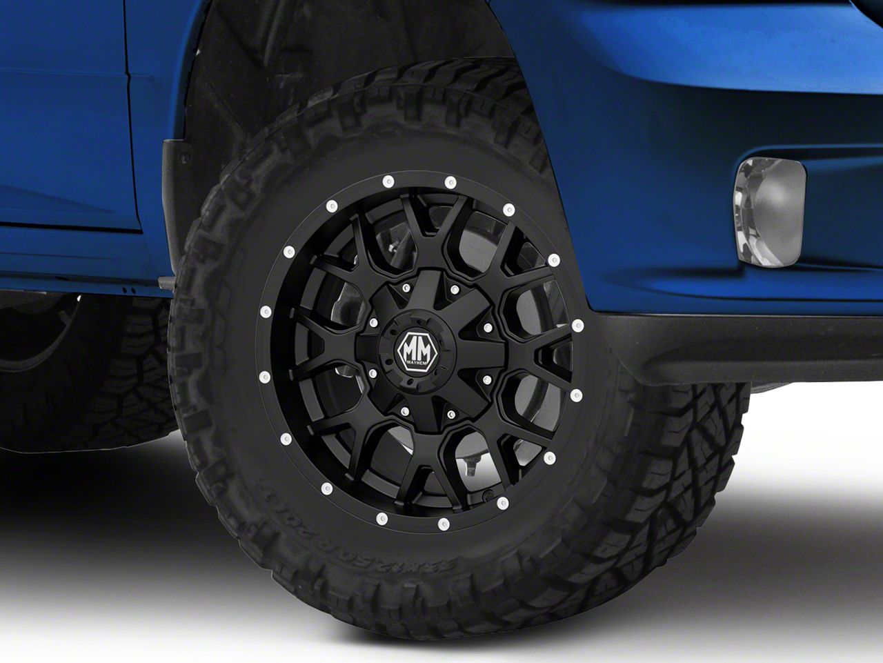 Application. This Mayhem Wheels Warrior Matte Black 5-Lug Wheel; 17x9; -12mm Offset with a backspace of 4.528 Inch, 115.1mm; and bolt pattern of 5 x 139.7mm (5 x 5.5-Inch), contributes to alignment, driving stability, and ensures a perfect fit with the vehicle model. Designed to fit the 2009-2018 RAM 1500. Sold individually.