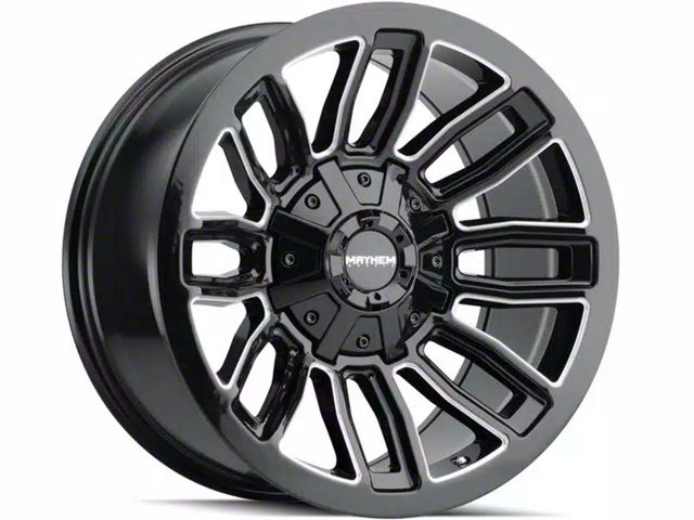 This 20x10 Mayhem Wheels Decoy Gloss Black Milled 6-Lug Wheel is completed in a high-quality gloss black finish with steel milled accents that will create a striking appearance. There's a durable clear coat that protects against driving hazards.