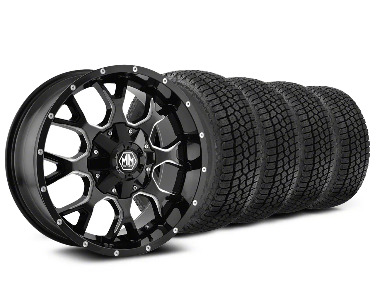 Mounted and Balanced Wheel and Tire Kit. This wheel and tire combo kit features (4) 20x9 Mayhem Wheels Warrior Gloss Black Milled 6-Lug Wheels and (4) Milestar All-Terrain Patagonia AT/R 33" - 275/60R20 tires that have been put together into an easy to buy kit that arrives to your door already mounted and balanced ready to be installed on your vehicle.