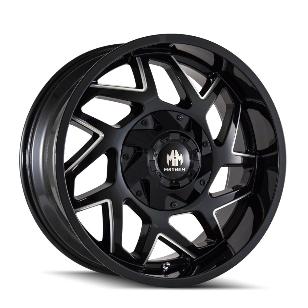 This 20x9 Mayhem Wheels Hatchet Black Milled 6-Lug Wheel is completed in a high-quality finish that will make your wheel the envy of everyone. There's a durable clear coat to ward off driving hazards.