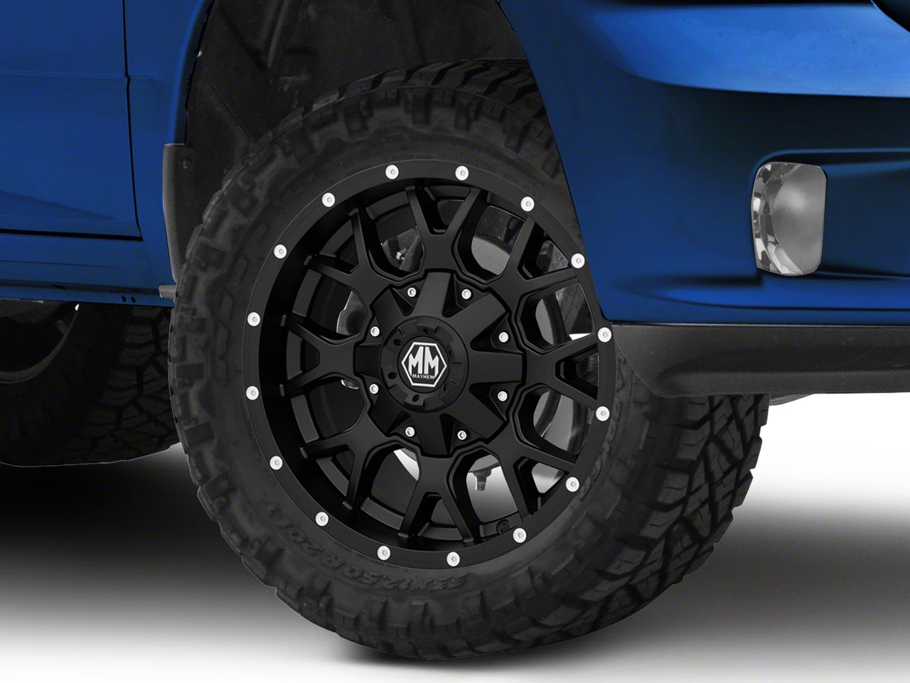 Application. This Mayhem Wheels Warrior Matte Black 5-Lug Wheel; 20x10; -25mm Offset, with a backspacing of 4.516 Inch, 114.8mm; and bolt pattern of 5 x 139.7mm (5 x 5.5-Inch), provides enhanced alignment and stability. Designed to fit the 2009-2018 RAM 1500 models, it offers precise fitment and is sold individually.