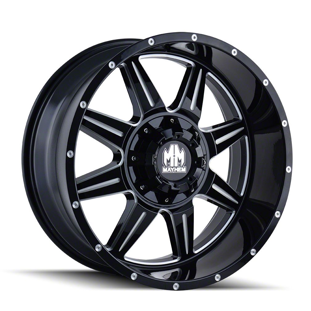 AmericanTrucks no longer carries the Mayhem Wheels Monstir Gloss Black Milled 6-Lug Wheel; 17x9; -12mm Offset (19-26 Silverado 1500). Please check out 1999-2006 Chevy Silverado Wheels & Tires for an updated selection.