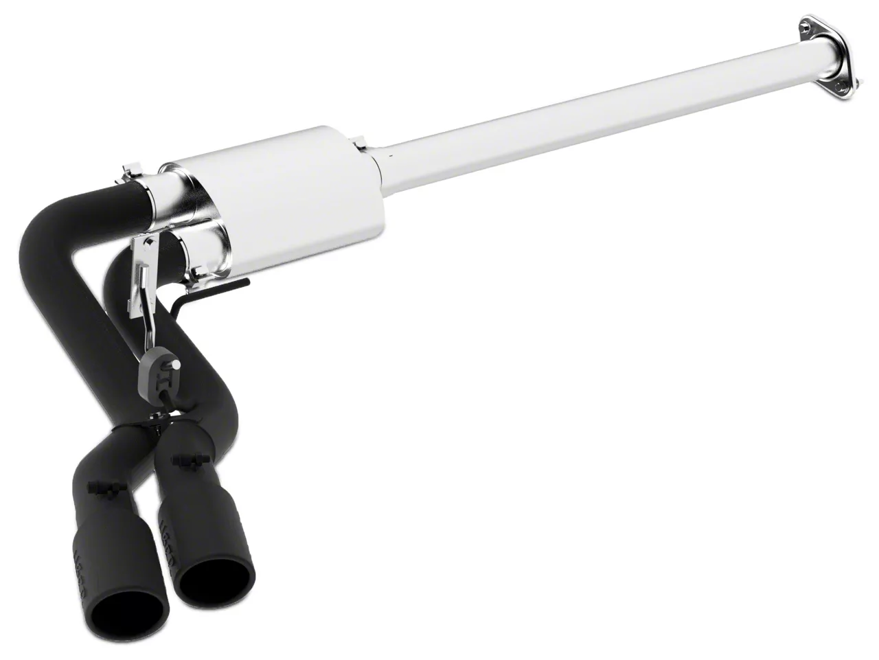 Aggressive Exhaust Sound. If you are pressing down on the pedal to increase your speed, you may want to hear the power. If you believe your exhaust note is too quiet, the MBRP Black Series Dual Single Side Cat-Back Exhaust will perform to your standards. This cat-back is designed to give your 5.0L F-150 a loud and intense sound. It can also decrease the temperature of your exhaust and increase the exhaust flow.