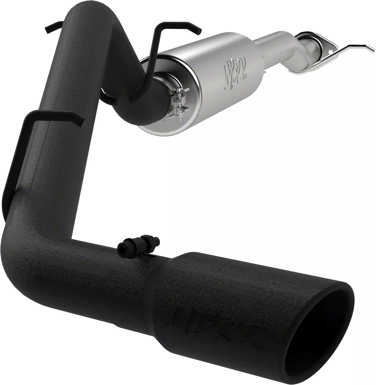 Performance. One of the standout advantages of the MBRP Armor BLK Single Exhaust System is its ability to improve exhaust flow over the stock exhaust system. This aftermarket exhaust features larger-diameter mandrel-bent tubing, which allows for smoother and less restrictive exhaust gas flow. The increased flow rate enables your 3.6L Colorado's engine to expel exhaust gases more efficiently, promoting better engine breathing and optimizing performance.