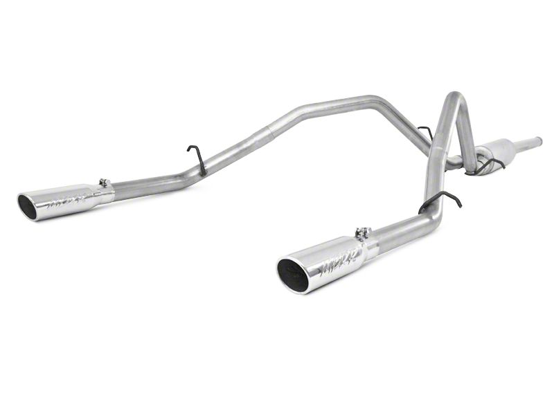 Looks and Sounds Divine. The Split Rear Exit MBRP Installer Series 2.5 in. Cat-Back Exhaust makes your truck sound cleaner and more powerful. And since the exhaust comes in two, your vehicle looks twice as gorgeous on the road.