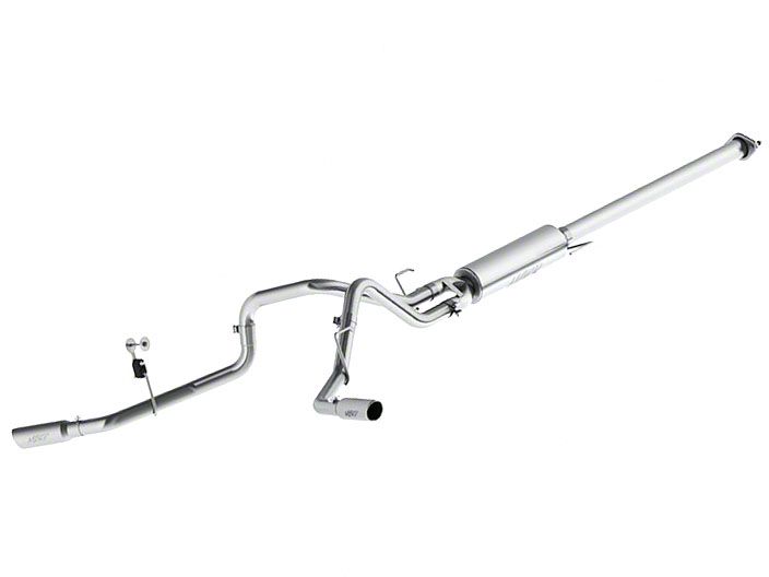 Simple Installation. The MBRP Installer Series Split Side Exit Cat-Back Exhaust is made to easily bolt onto your Ford F-150s OEM hangers. However, you may need to trim the piping down to fit your specific cab and bed.