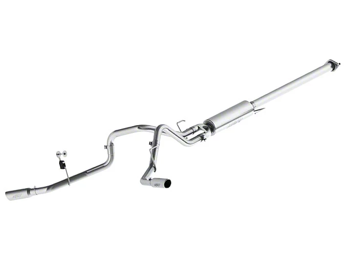 Intense Exhaust Tones. If you are looking to improve the lackluster sound of your Ford F-150 when you drive off the lot, the MBRP Installer Series 2.5 In. Cat-Back Exhaust might be just the thing. With this exhaust system, your truck’s tone will be meaner than the factory muffler allows.