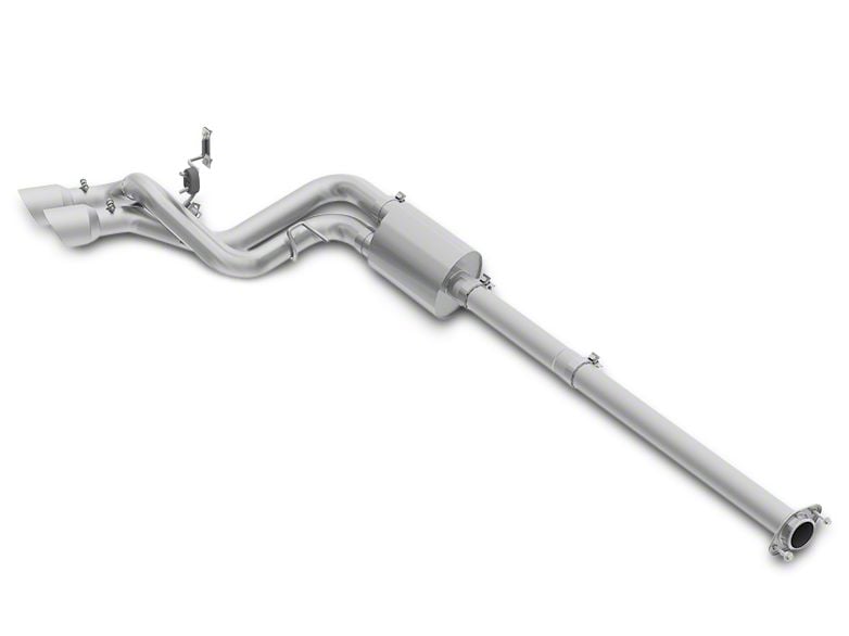 A Snug Fit. The MBRP Pro Series 3 in. cat-back exhaust is made to fit right into the same spot the original equipment sat in. You can remove the original muffler and pipes and mount this kit into place using the built-in mounts and some new hardware. All the pipes fit on without cutting or welding. This makes installation fast and simple. Expect to finish in just two hours after you start.