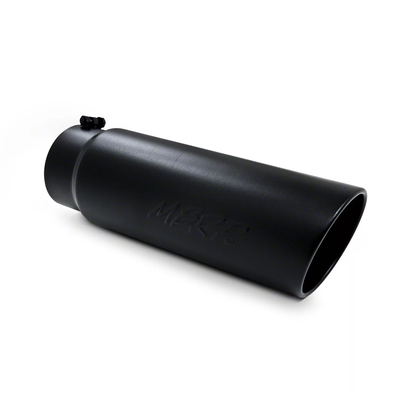 MBRP Styling. Add aggressive styling to your truck with a MBRP 6-Inch Black Angled Rolled End Exhaust Tip. Sold individually, this Exhaust Tip was designed for use on vehicle's equipped with a 5 inch exhaust system. This black Exhaust Tip is the perfect appearance upgrade for your truck.