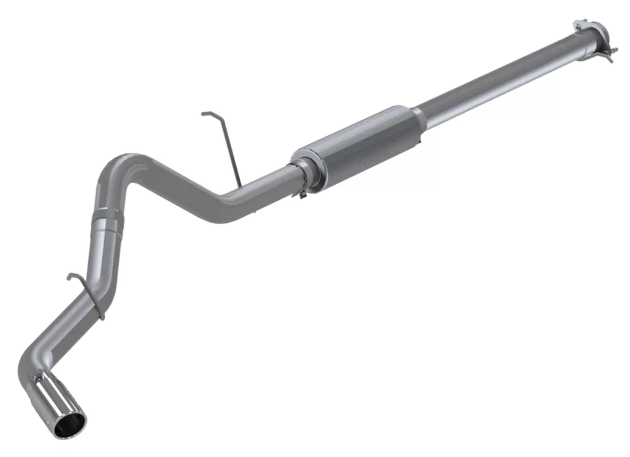 Toughness and Style. MBRP ensures that its exhaust systems can hold up well with time. This XP Series Single Exhaust System is built from tough and corrosion-resistant T409 stainless steel tubing. The fully welded pipes offer extra durability, and the sturdy hangers secure the assembly in place especially in rough conditions. Furthermore, the distinctive exterior features a 4-inch, slant-cut, mirror polished, T304 stainless steel exhaust tip for an aggressive style.