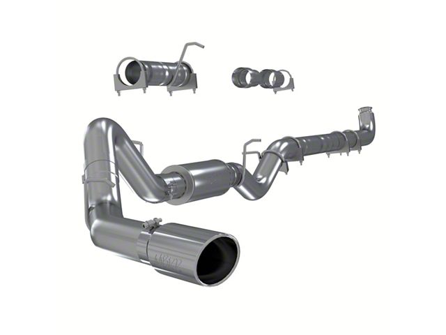 Performance and Sound. Get an upgrade in sound and performance with the MBRP 4-Inch XP Series Single Exhaust System (Side Exit). This single exhaust system includes exhaust pipes, a muffler, and a tip. It has a passenger-side exit and a 4-inch pipe diameter, and this exhaust system upgrade delivers a rich, smooth exhaust note and an improvement in fuel economy by 1-2 mpg.