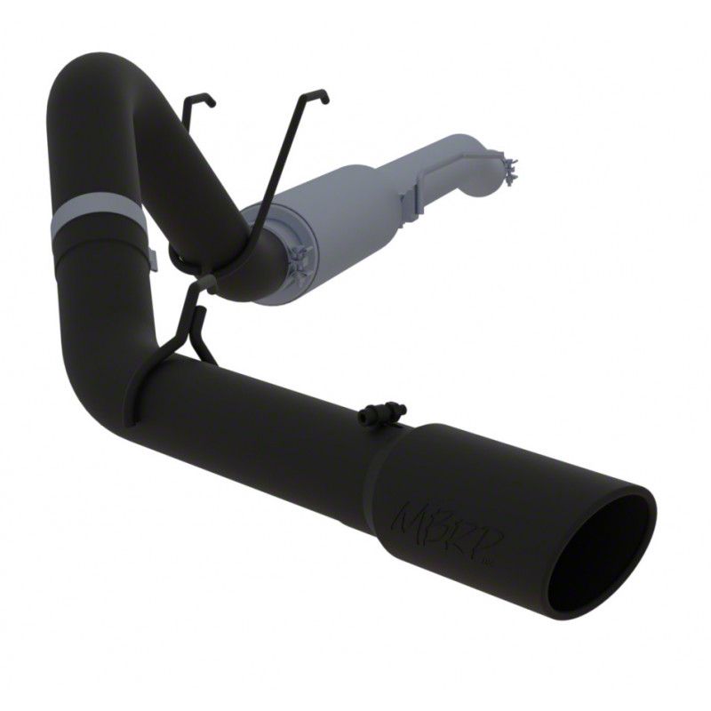 By MBRP. For one of the more rugged all-black exhaust systems in the business, look no further than the MBRP 4-inch Black Series Single Exhaust System - Side Exit. This exhaust system rocks the senses with an all black, aluminized cat-back construction with a black coated tip.