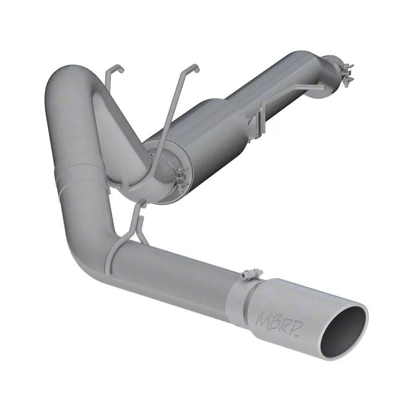 Powerful Exhaust Note. When you're looking to empower your Ford F-250, then the MBRP 4-Inch Installer Series Single Exhaust System with Polished Tip; Side Exit is what you need to take it to the next level. Its powerful roar as soon as you hit the gas ensures that you're going to turn heads as soon as you turn on your car.