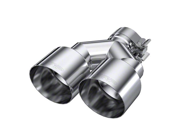 Application. This MBRP 4.0-Inch Dual Polished Exhaust Tip; Passenger Side; 2.50-Inch Connection features a universal design for use on all makes and models of vehicles equipped with a 2.5-inch exhaust system. Sold individually.