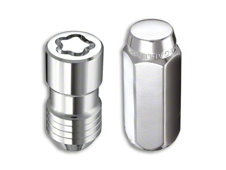 Secure Your Wheels. Use this McGard Chrome 5-Lug Wheel Installation Lug Nut Kit - 9/16 in. to secure your wheels and keep them safe from theft. This kit includes lug nuts for 5-lug wheels, wheel locks, a wheel lock key, and a key pouch for a complete wheel installation solution. The overall length of these cone seat style lug nuts is 1.75” and the thread size of 9/16-18”, with a hex size of 7/8”.