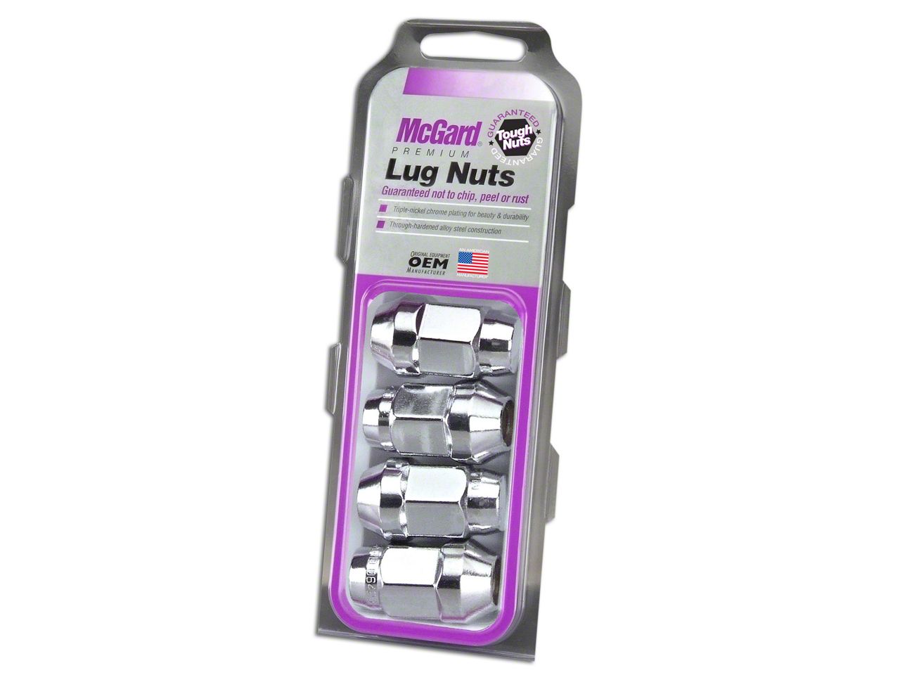 Warranty Information. Your new lugs nuts are covered by McGard’s “Tough Nut” finish guarantee. They are guaranteed not to rust, chip or peel for life. They are also covered from defects in materials and workmanship for life.
