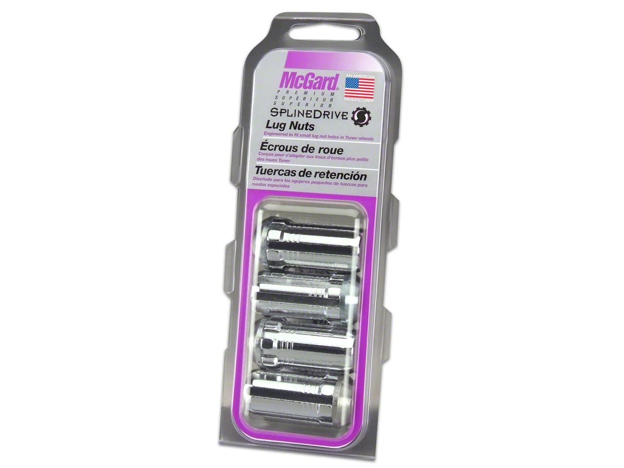 Uncompromising Performance. Complement the rugged styling of your wheels with this McGard Chrome SplineDrive Lug Nut Set - 14mm x 1.5 in. - Set of Four. This cone seat nut style lug nut set has a SplineDrive design, which ensures enhanced stud engagement, more grip, and lightweight sturdiness. These lug nuts have a thread size of 14mm x 1.5 in., and an overall length of 1.648 inches.