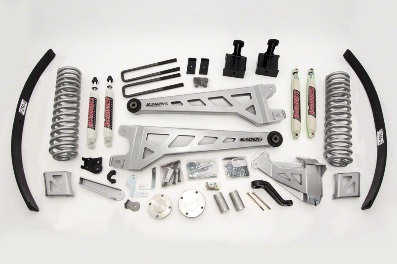 Application. This McGaughys Suspension 8-Inch Premium Radius Arm Suspension Lift Kit with Shocks fits 2017-2022 4WD F-250 Super Duty models with a flange style rear driveline.