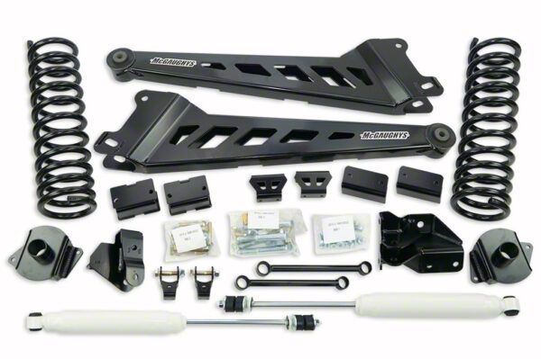 Upgraded Lift Efficiency. The McGaughys Suspension 4-Inch Premium Radius Arm Suspension Lift Kit with Shocks is the perfect upgrade for any truck enthusiast who demands the best. This top-of-the-line lift kit is designed to provide your truck with a bold, aggressive stance while improving off-road performance and overall ride quality.