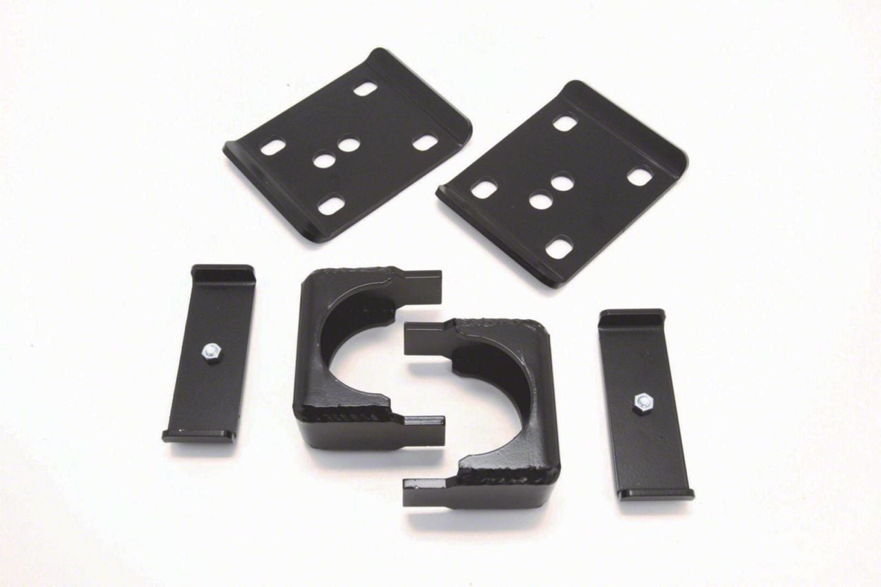Construction and Appearance. The kit includes heavy-duty rear axle saddles, U-bolt plates, and retainer plates made from durable, high-grade steel. All components feature a protective black powder coat to resist corrosion and deliver a clean, professional look under the vehicle.
