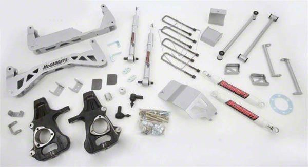 Application. The McGaughys Suspension 7 to 9-Inch Premium Suspension Lift Kit with Shocks; Silver fits 2014-2018 2WD Sierra 1500 models with Stock Cast Aluminum or Stamped Steel Control Arms, excluding Denali.