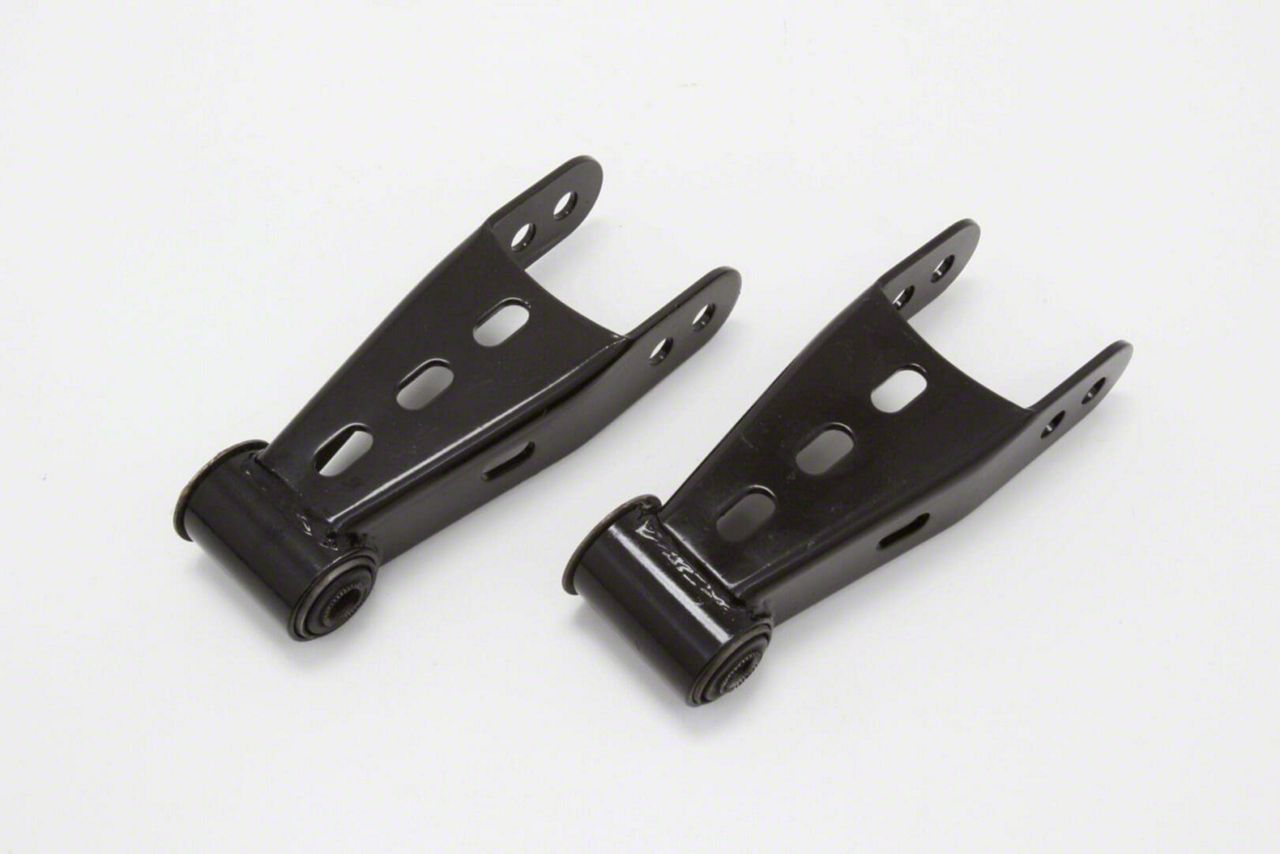 Construction and Appearance. Built from high-quality materials, these shackles are wrapped in a durable, corrosion-resistant coating to ensure long-lasting performance. Designed for vehicle-specific applications, they maintain a factory-like fit while delivering a custom appearance.