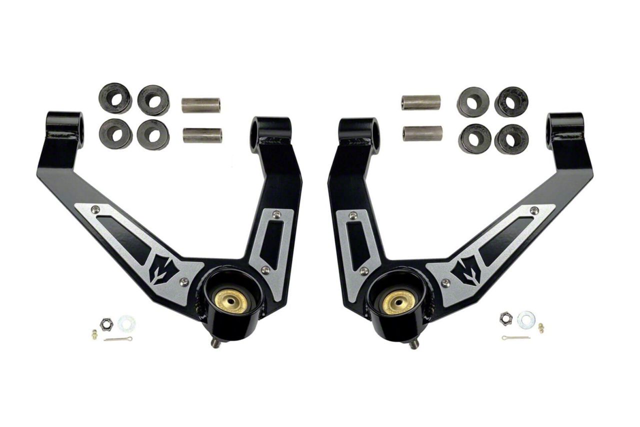 Reliable Front Suspension Upgrade. The McGaughys Suspension Upper Control Arms provide a durable and high-quality replacement for the front suspension on your Chevrolet Silverado 1500. Built to match OE standards, these control arms enhance stability and handling, especially when paired with stock suspension components.