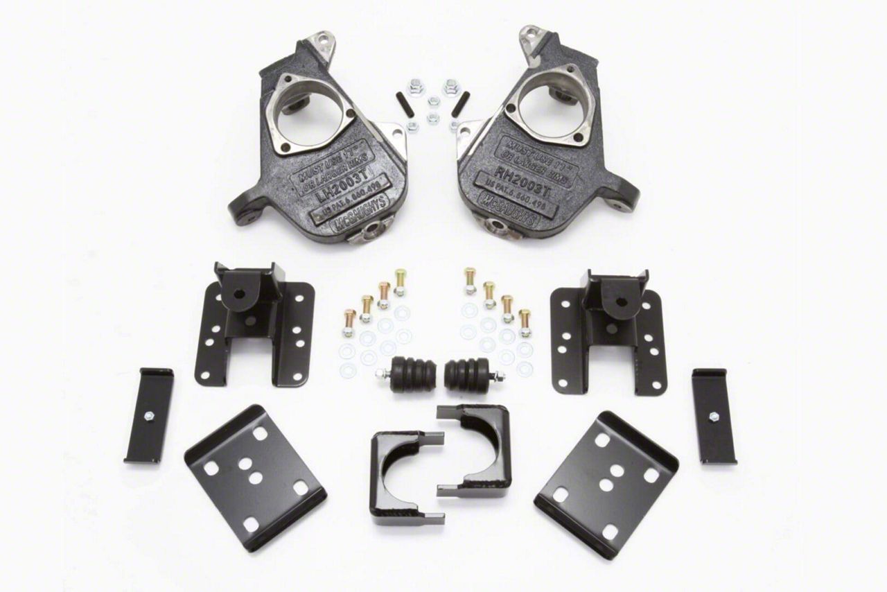 Enhanced Suspension Performance. Lower your truck for a sleek, aggressive stance with the McGaughys Suspension Lowering Kit. Designed for Chevrolet Silverado 1500 models, this kit provides a front drop of 2 inches and a rear drop of 4 inches, improving handling and aerodynamics while maintaining ride quality.