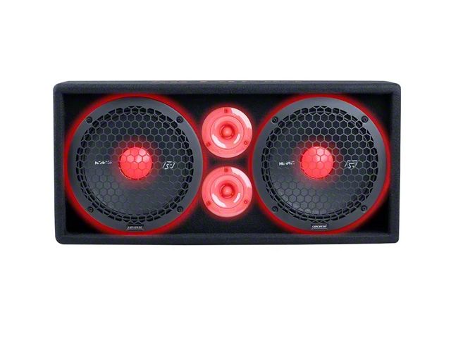 All-In-One Audio Power. The Memphis Audio SRX Pro Enclosure has a universal fit and is engineered to deliver full-range sound with serious bass and clear highs. This vented system includes two 10-inch subwoofers and two tweeters, providing a complete sound solution for music enthusiasts seeking volume, clarity, and striking style in one durable setup.
