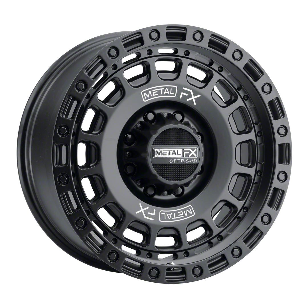 Metal FX Offroad Hitman Satin Black 8-Lug Wheel; 20x9; 18mm Offset This wheel brings a commanding presence with its distinct design, making it a bold choice for enthusiasts looking to upgrade their vehicle’s look. The premium finish and attention to detail reflect the high standards of Metal FX Offroad, giving any vehicle a modern and aggressive edge. Its styling pairs seamlessly with rugged builds or sleek street setups alike, elevating curb appeal with ease.