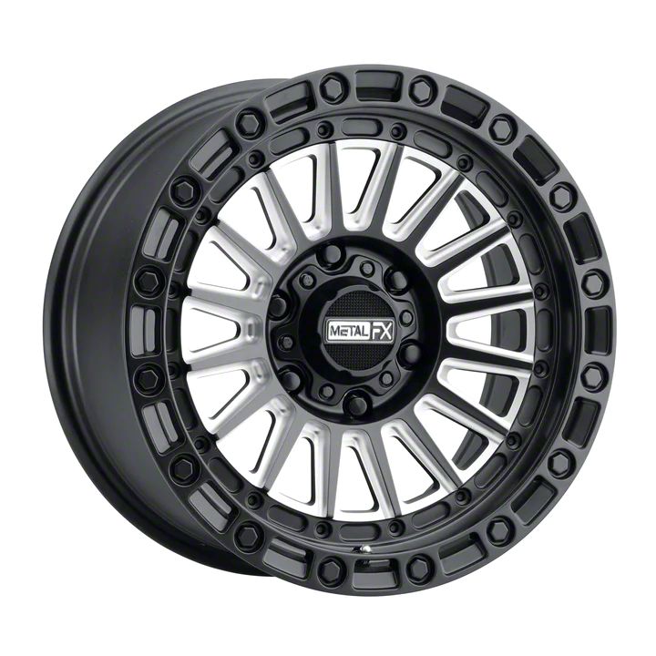 Metal FX Offroad Rogue Satin Black Contrast Cut 6-Lug Wheel; 17x8.5; 0mm Offset exudes sophistication with its finish, offering a sleek and modern appeal to any vehicle it adorns. The design is meticulously crafted to enhance the aesthetic of your vehicle, giving it a distinctive and upscale look. Perfect for those seeking to elevate their vehicle's style, this wheel blends seamlessly with both contemporary and classic vehicle designs, making it a versatile choice for a wide range of vehicles. Its robust construction ensures durability, making it a reliable choice for drivers who value both style and quality.