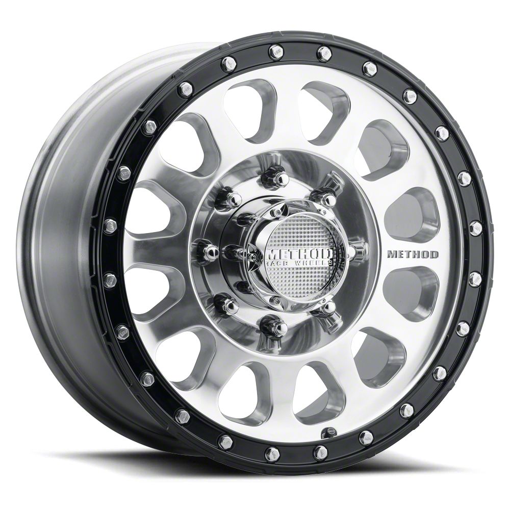 Method Race Wheels MR315 Polished with Gloss Black Lip 8-Lug Wheel; 18x9; 18mm Offset This wheel combines aggressive styling with proven durability, delivering a commanding presence that enhances any vehicle's stance. Its precision-engineered design reflects the demands of serious off-road enthusiasts. The distinctive aesthetic complements both modern trucks and SUVs seeking a rugged, purposeful appearance.