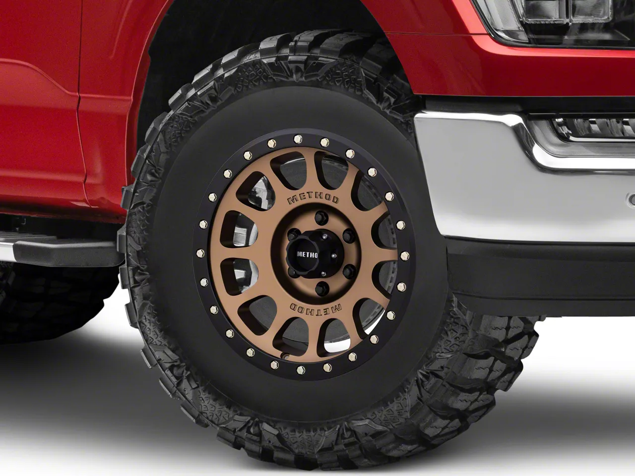 Application. This Method Race Wheels MR305 NV Bronze 6-Lug Wheel; 17x8.5; 0mm Offset with a backspace of 4.75 Inch, 120.7mm; and bolt pattern of 6 x 135mm (6 x 5.31-Inch), contributes to alignment, driving stability, and ensures a perfect fit with the vehicle model. Designed to fit the 2021-2026 F-150. Sold individually.
