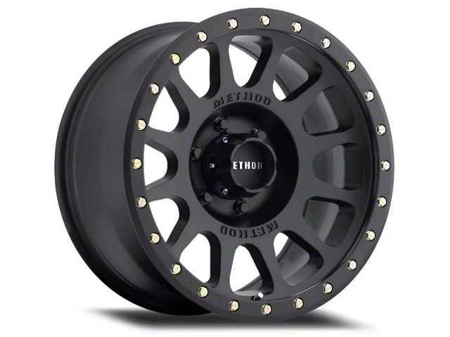 This 20x9 Method Race Wheels MR305 NV Matte Black with Gloss Black Lip 8-Lug Wheel; 20x9; 18mm Offset is completed in a high-quality matte black finish with gloss black accents that will be the envy of everyone. For added protection and looks, there is a clear coat designed to handle whatever the road, or beyond, throws at it.