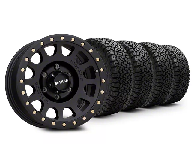 Mounted and Balanced Wheel and Tire Kit. This wheel and tire combo kit features (4) 18x9 Method Race Wheels MR305 NV Matte Black 6-Lug Wheels and (4) BF Goodrich All-Terrain T/A KO 35x12.50R18 tires that have been put together into an easy to buy kit that arrives to your door already mounted and balanced ready to be installed on your vehicle.