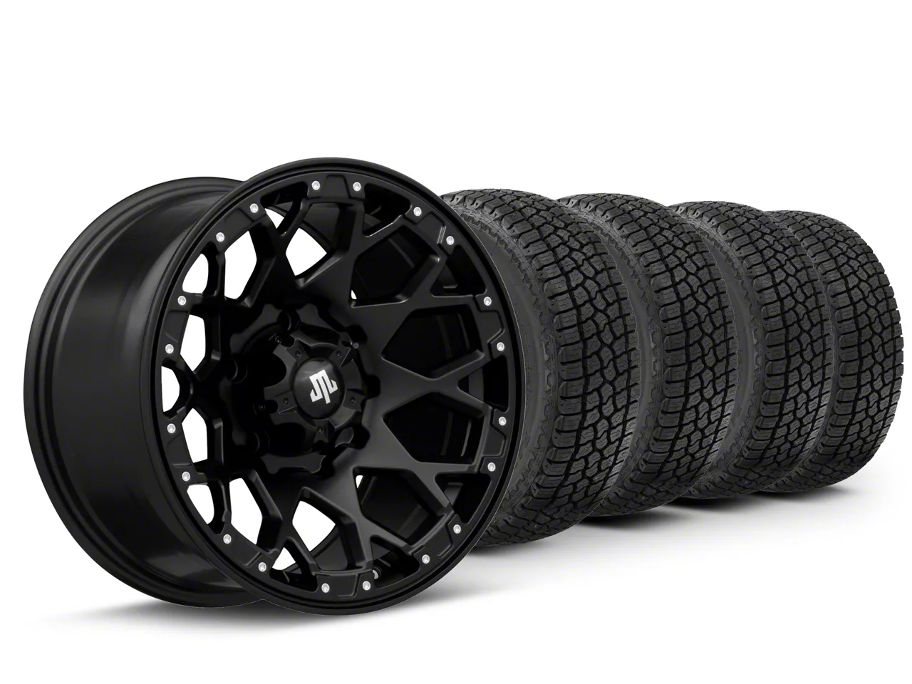 Mounted and Balanced Wheel and Tire Kit. This wheel and tire combo kit features (4) 17x9 Mammoth Vex Satin Black Machined Wheels and (4) Milestar All-Terrain Patagonia AT/R 33" - 285/70R17 tires that have been put together into an easy to buy kit that arrives to your door already mounted and balanced ready to be installed on your vehicle.