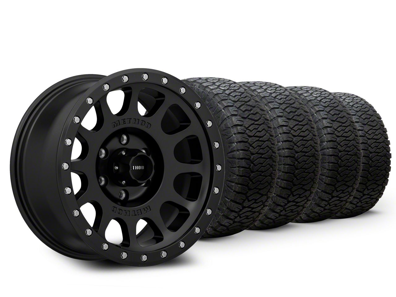 Mounted and Balanced Wheel and Tire Kit. This wheel and tire combo kit features (4) 20x10 Method Race Wheels MR305 NV Matte Black Wheels and (4) Maxxis Razr A/T 33" - 33x12.50R20 tires that have been put together into an easy to buy kit that arrives to your door already mounted and balanced ready to be installed on your vehicle.