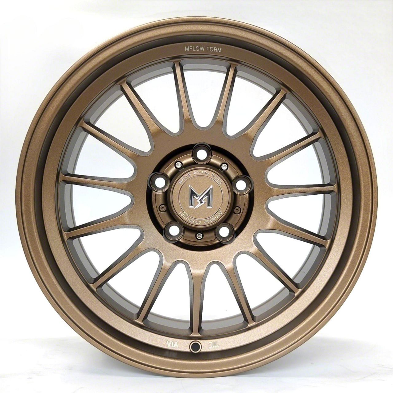 The 17x9 MFlow Racing MF04 Matte Bronze 6-Lug Wheel; 17x9; 0mm Offset is completed in a high-quality, sparkling bronze finish, which will be sure to turn heads. For added durability and appearance, there is a durable clear coat that withstands the rigors of the road.