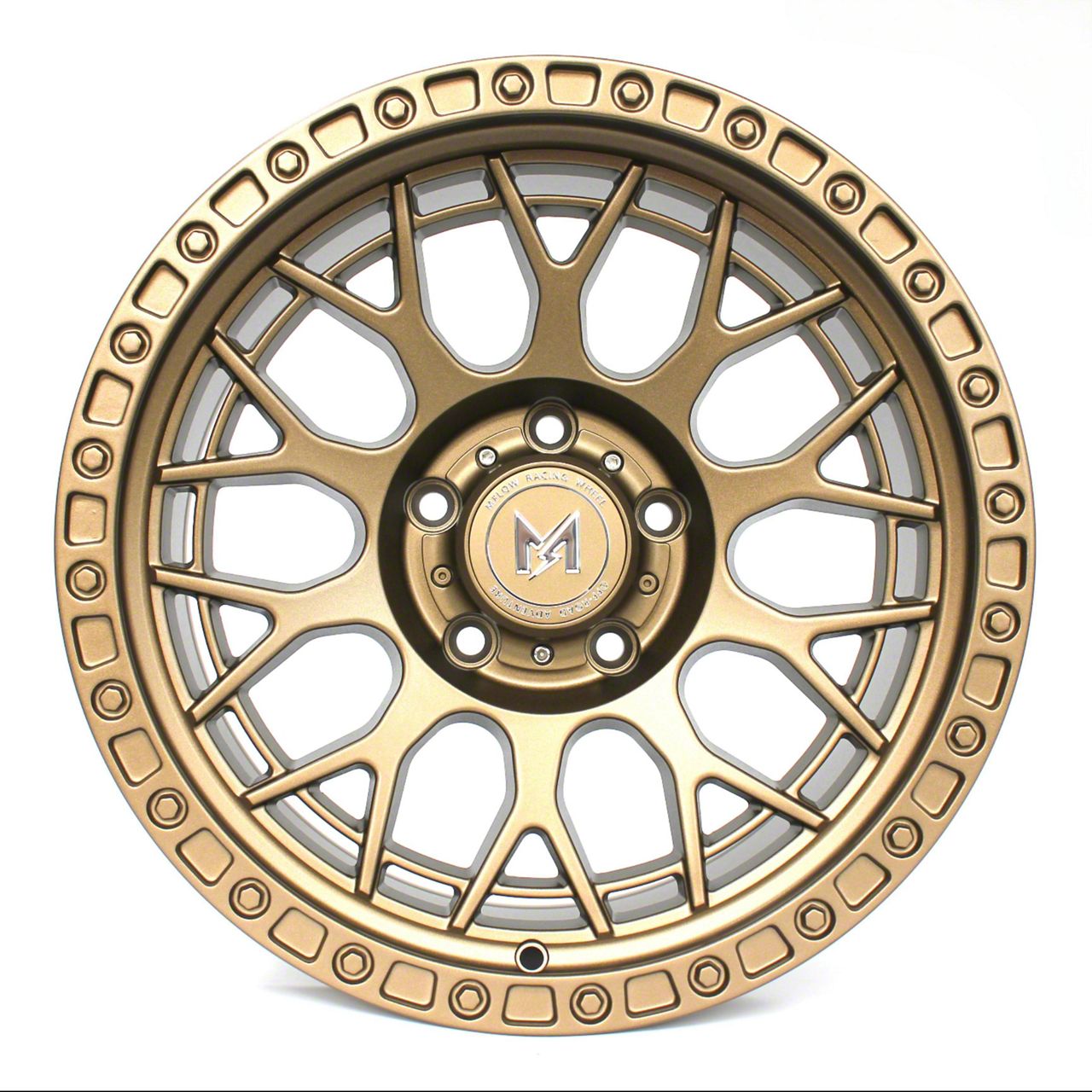 The 17x9 MFlow Racing MF02 Matte Bronze 6-Lug Wheel; 17x9; 0mm Offset is completed in a high-quality, sparkling bronze finish, which will be sure to turn heads. For added durability and appearance, there is a durable clear coat that withstands the rigors of the road.