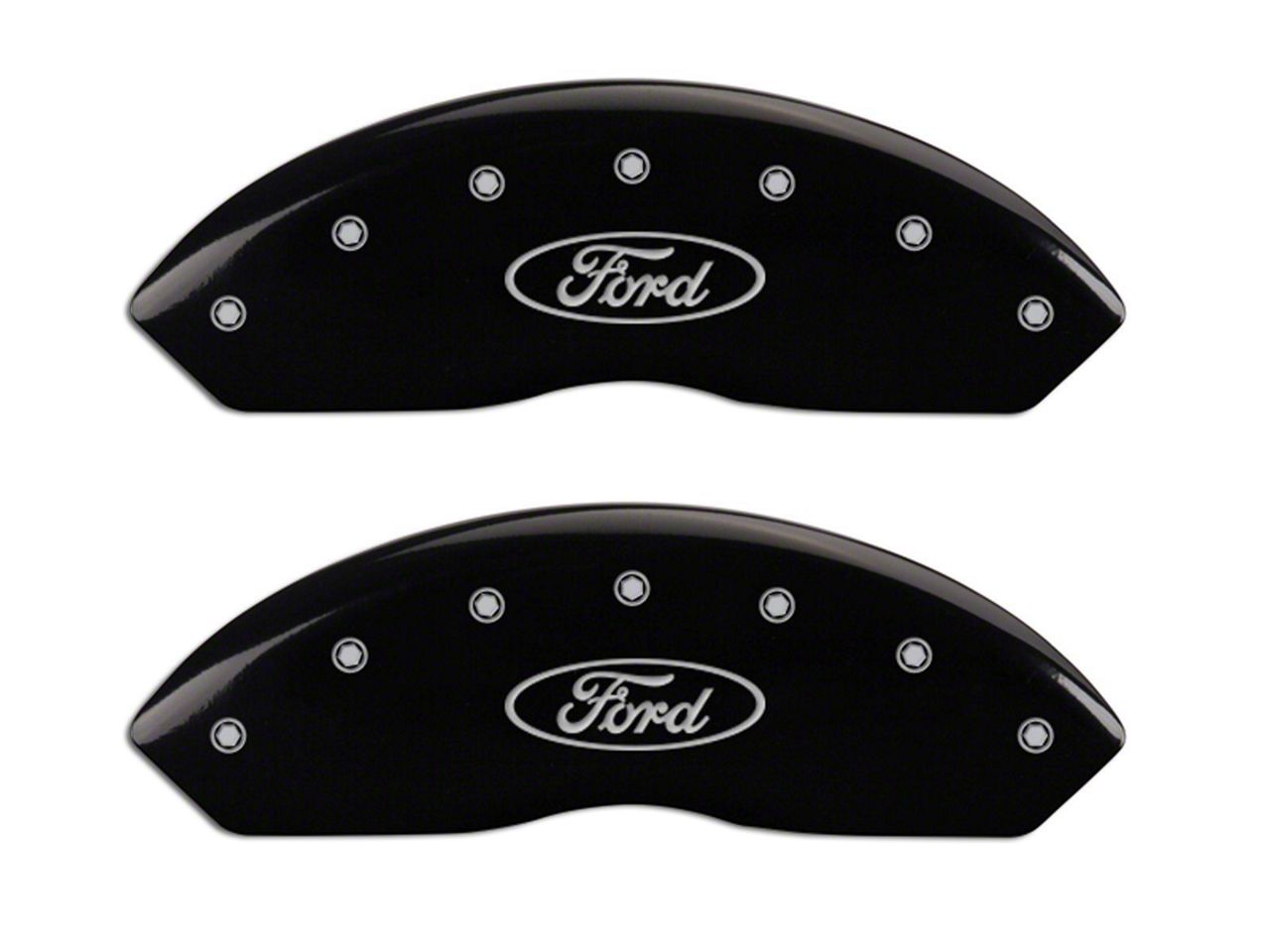 Attractive Custom Styling. Since its conception more than eight years ago, MGP Caliper Covers has been manufacturing innovative, easy-to-mount and cutting-edge brake caliper designs. Their newly engineered MGP Black Caliper Covers w/ Ford Oval Logo comes with both the front and rear pair for a complete look. It features an oval, silver "Ford" logo, centrally embossed on the black painted surface to integrate a stylish look that gives your wheel-tire setup a stealthily bold look.