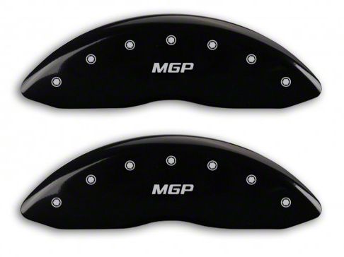 Bold Sinister Brake Appearance. These MGP Black Caliper Covers with MGP Logo were designed for the Silverado owner with a bold persona. Featuring a bold black powder coat finish, each cover disc is engraved with a MGP silver logo and embossed with chrome bolts to prevent rust and abrasion. Their oversized, custom design leaves an impress of big-brakes, intimidating any competitions on the adjacent lane.